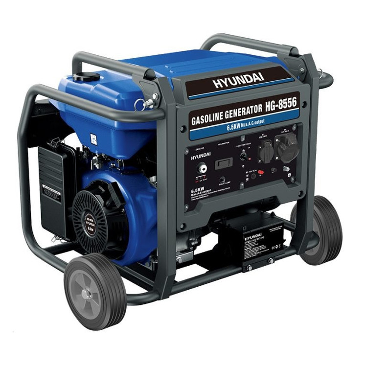 موتور برق هیوندای ۶.۵ کیلووات مدل HG8556 یکی از برترین نمونه تولیدات جدید شرکت هیوندای به شمار میرود. این موتور برق بنزینی هیوندای با نحوه راهاندازی از نوع هندلی و استارتی، وزن ۹۱ کیلوگرم، ظرفیت سیلندر ۴۲۰ سیسی و با سیم پیچ از جنس 100%مس طراحی و تهیه شده است. ژنراتور بنزینی HG-8556 محصولی کاربردی است که برای تولید برق اماکن عمومی و صنعتی یا خانگی استفاده میشود. این ژنراتور به منظور سهولت در کاربردی از دسته و چرخ بهرهمند میباشد.