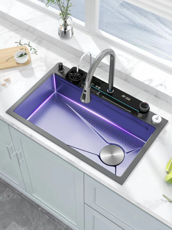 سینک ظرفشویی آبشاری مشکی مدل پیانویی 3 کلید جدید برند هایشینگ اصل