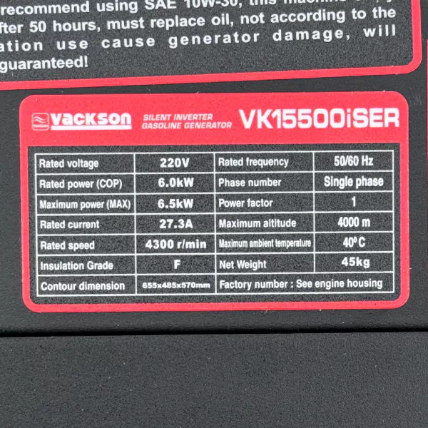 میزان صدای موتور برق واکسون مدل VK15500iSER سایلنت به 62 دسیبل میرسد.
