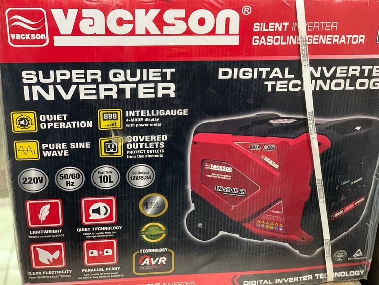 موتور برق اینورتر واکسون در ابعاد 57*48*65 سانتیمتر و دارای وزن حدود 45 کیلوگرم را دارد. خوب است بدانید که سوخت مصرفی این دستگاه بنزین است. محصول فوق روی شاسی بسیار مقاوم درون کیف سوار شده و استارت ان به صورت هندلی و استارتی است.