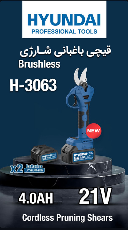 قیچی باغبانی شارژی قطر برش ۲۵ میلیمتر هیوندای 21 ولت براشلس مدل HP3063