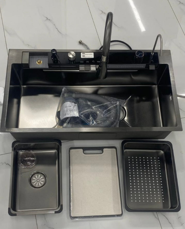 ۱ عدد سینک نانو ضد خش، شیر آبکشی چند منظوره نمایشگر دیجیتال، حوضچه، سبد تخلیه، شیر تصفیه آب، لیوان شوی، صابون ریز، تخته برش، شیلنگ شاوری، لوله سرد و گرم، لوله ظرفشویی، لوله پایین صافی |