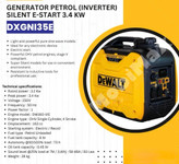 ژنراتور برقی اینورتر Dewalt DXGNI35E یک منبع تغذیه قدرتمند با توان نامی ۳.۲ کیلووات و حداکثر ظرفیت ۳.۴ کیلووات است که آن را برای کاربردهای متنوع در محیطهای خانگی و حرفهای ایدهآل میکند.